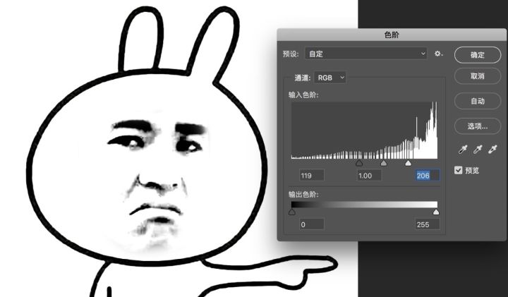 最后我们再调整一下图片,亮度对比度、色阶、曲线都可以,我们以色阶为例。