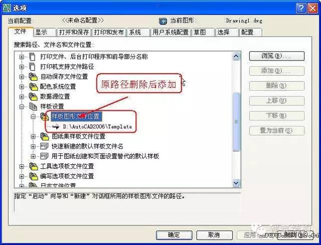 4、位置:模板文件建议放在AutoCAD安装目录下,便于查找,可以在选项对话框里进行更改。