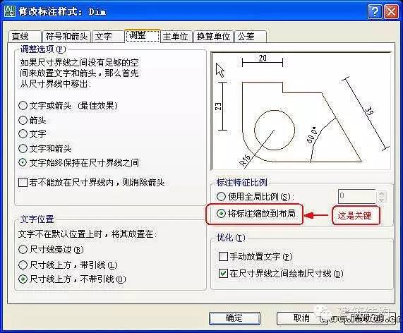 这里的关键是设全局比例Dimscale=0,在标注样式中表示为:“将标注缩放到布局”,即勾选此项。
