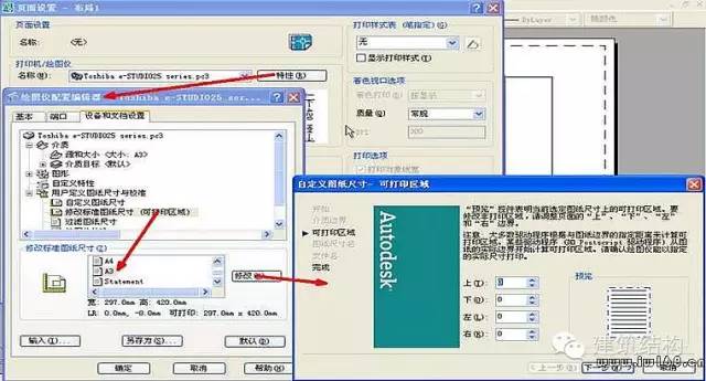 对于页面设置,既可以在设置好后存成一个空白的CAD文件(可以包含多个打印机的设置),例如命名为A3(canon页面设置).dwg,在电脑中一看便知;也可以利用正式的图纸中已命名的页面设置,像上图中“A3(A4窗口打印)”,这是页面设置名,都可以,看个人的习惯了。前者相对而言要整洁规矩些。