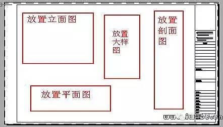 这里要说明一下,首先你自己要确定好在一个布局中放几个图形,这里我计划放三个主图形,两个是大样图,主图在什么位置,大样图在什么位置,以及它们大概的区域,要做到心中有数,同时要考虑文字、尺寸标注及符号的位置。