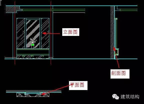 4、同样,建立主图——剖面图及平面图的视口,并调整各自视口内图形为相应的平面图、立面图。