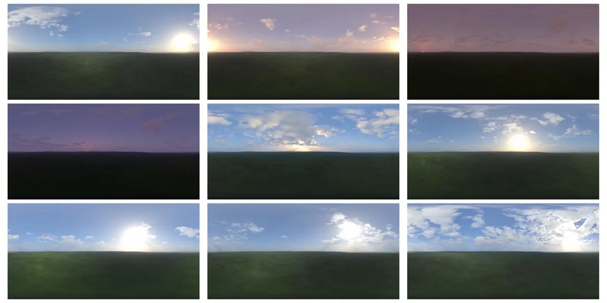 CGAxis HDRI天空集合是一组108张全球形 HDR图像。在其中,您会发现沙漠,湖泊,海洋,草地等的全景,还有从清晨到深夜的夕阳。所有图像分辨率均为10000 x 5000 px,并采用32位高动态范围文件格式和JPG文件格式。该集合的总大小为12.9GB。