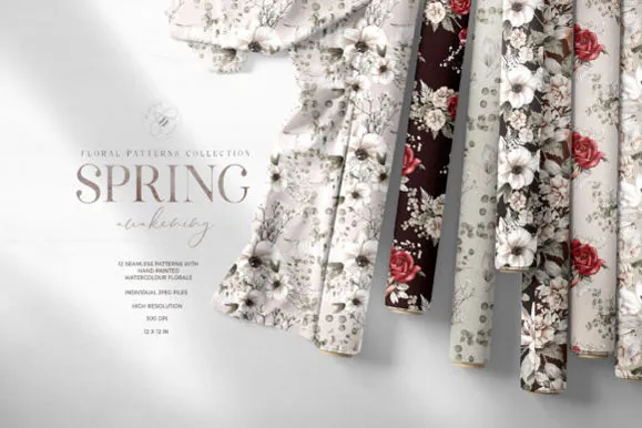 🌷 12 幅水彩手绘花卉无缝图案的集合