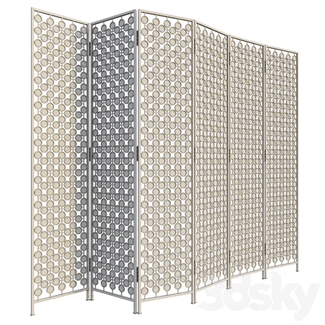 东部镜面屏风,由框架和小圆形镜组成。 Vray + Corona