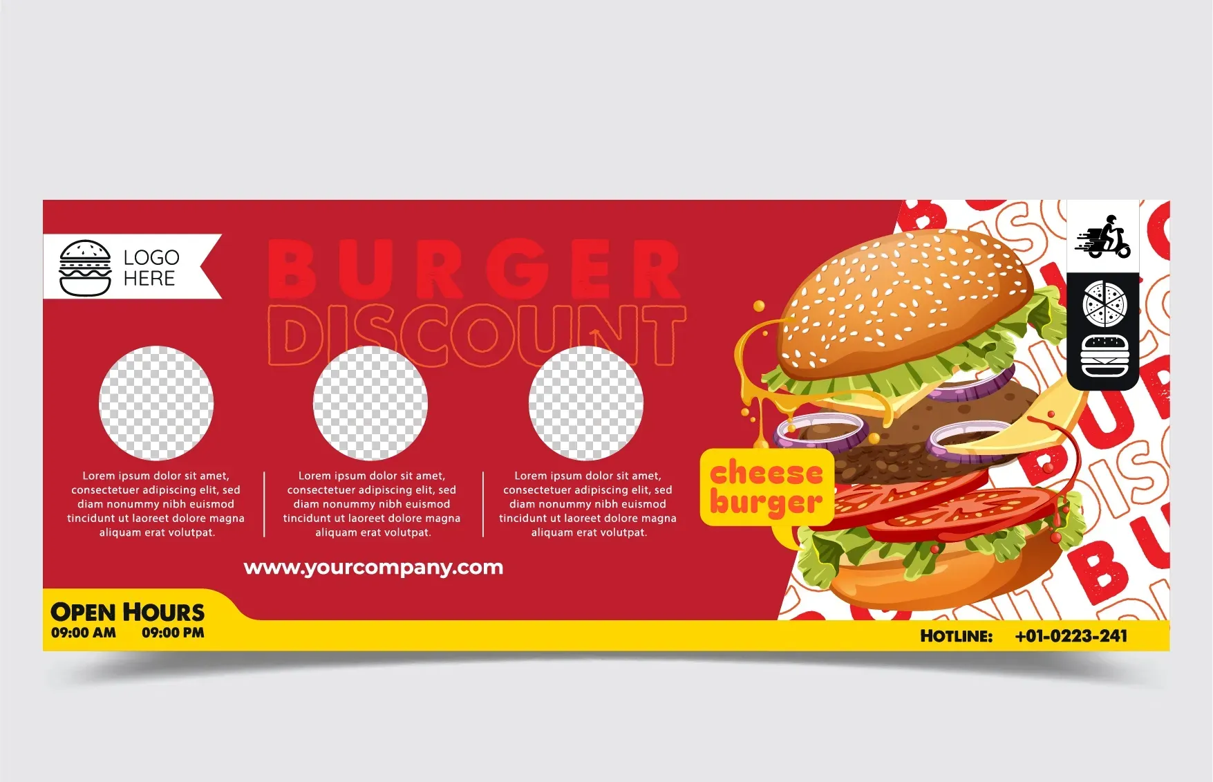 素材说明:来学习素材网为您提供高品质实用的汉堡动感优雅折扣横幅模板,本次主题是汉堡动感优雅折扣横幅模板,素材图片编号是None,素材尺寸是无限缩放,该素材大小是8.31 MB。汉堡动感优雅折扣横幅模板是由热心网友dream上传。你可能还对汉堡 动感 优雅 折扣 横幅 相关设计素材感兴趣。