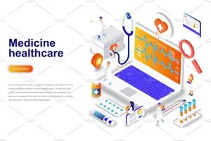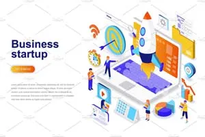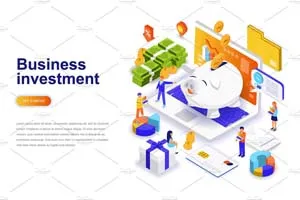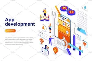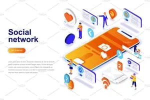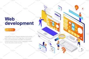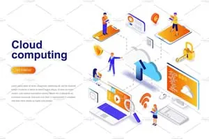 现代设计等距概念。登陆页模板。
