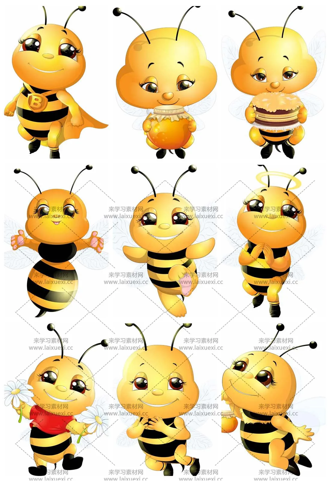 素材说明:来学习素材网为您提供高品质实用的28个卡通可爱的小蜜蜂矢量插图,本次主题是28个卡通可爱的小蜜蜂矢量插图,素材图片编号是90E221258,素材尺寸是无限缩放,该素材大小是128 MB。28个卡通可爱的小蜜蜂矢量插图是由热心网友dream上传。你可能还对蜜蜂 小蜜蜂 动物 EPS VIP EPSVIP 相关设计素材感兴趣。