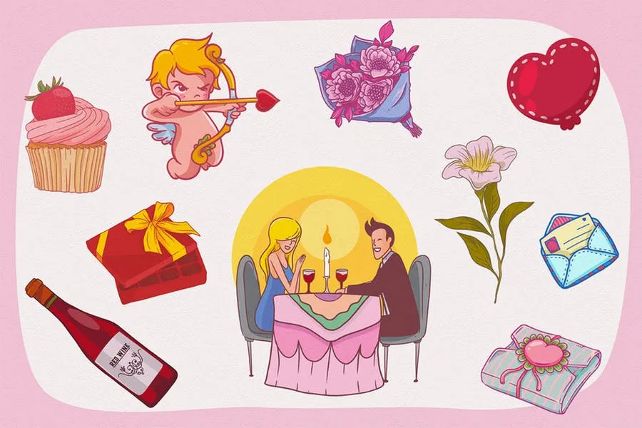 可爱的浪漫插图包以矢量格式与您可爱的伴侣庆祝情人节。