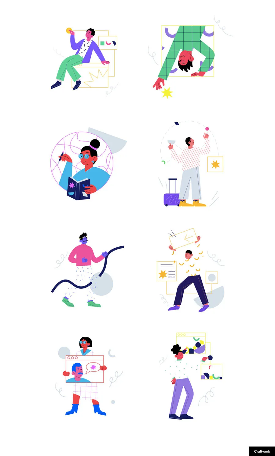 这是一组令人难以置信的20幅插图,各具特色。 它们是100%向量,因此您可以在任何图形软件中使用这些插图。