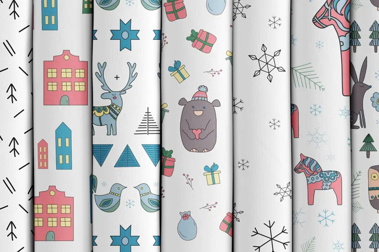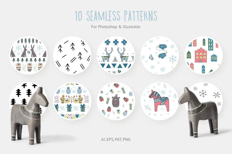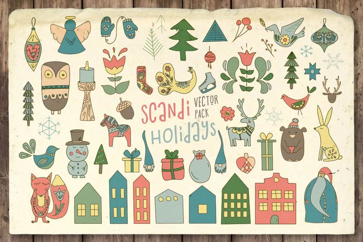 斯堪的纳维亚设计和民俗风格一直是我无穷无尽的灵感源泉! 有时我只想在民间童话故事中的某个神奇村庄度过整个寒假。 所以,我希望我的新圣诞矢量包能给你带来这种神奇的感觉,并激发你创造美好的事物,让一年中最美好的时光更加美好!