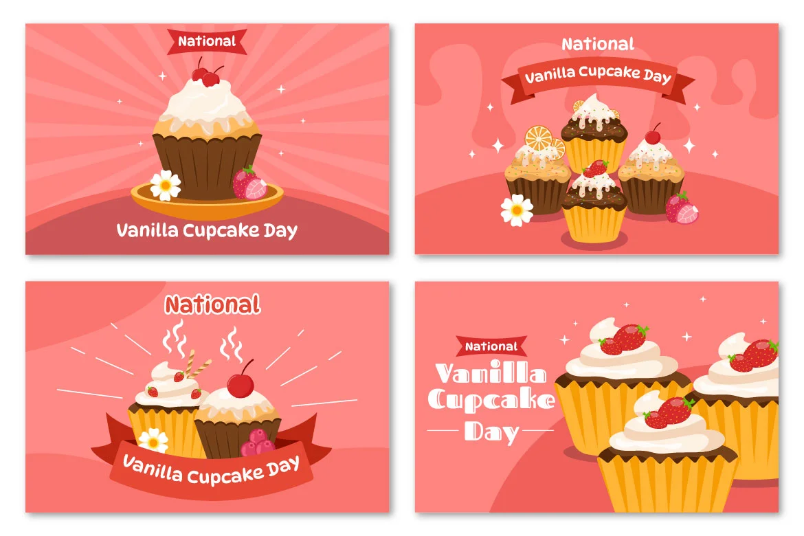 内容:纸杯蛋糕,配有草莓和香草奶油 设计风格:平面卡通风格,粉色背景 适用范围:海报、网络横幅、宣传册、着陆页等 背景模板特点: