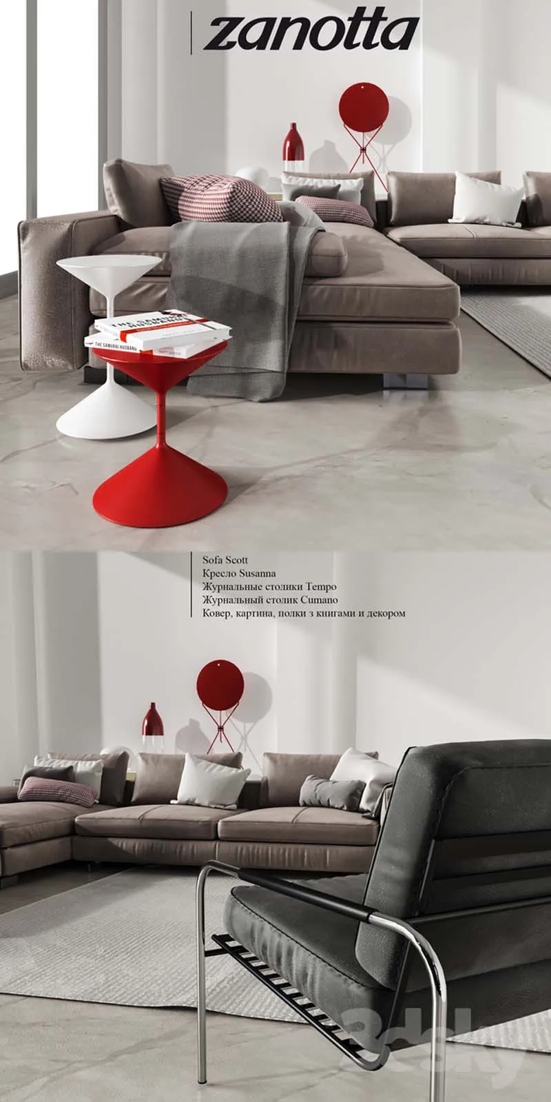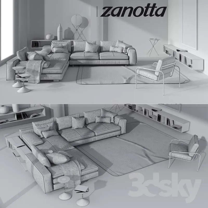 sofa, zanotta, armchair, coffee table