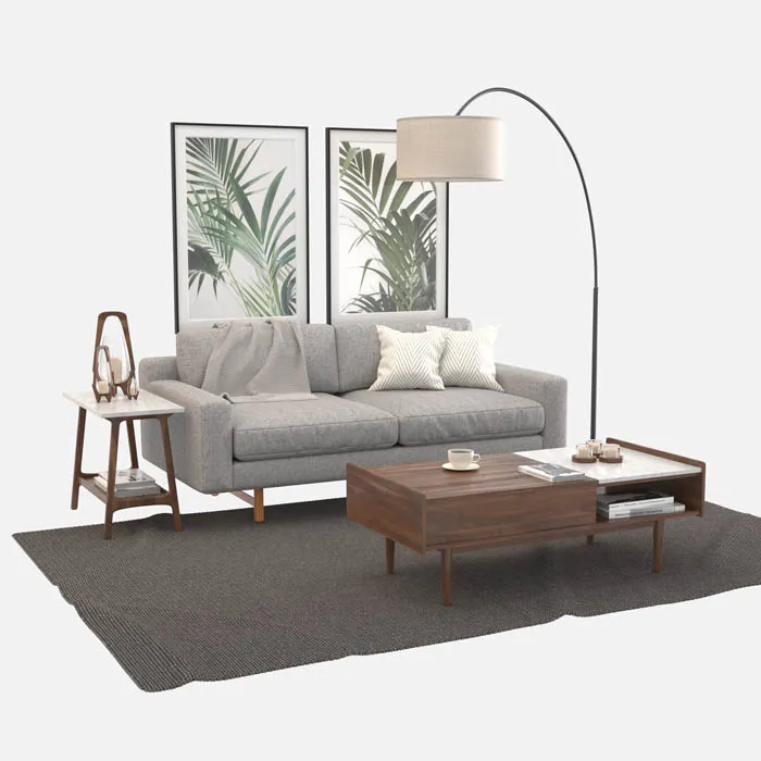 westelm, sofa, fabric, lamp, light, coffeetable, coffee, pillow, marble, wood, midcentury, candleholder, eddyloveseat