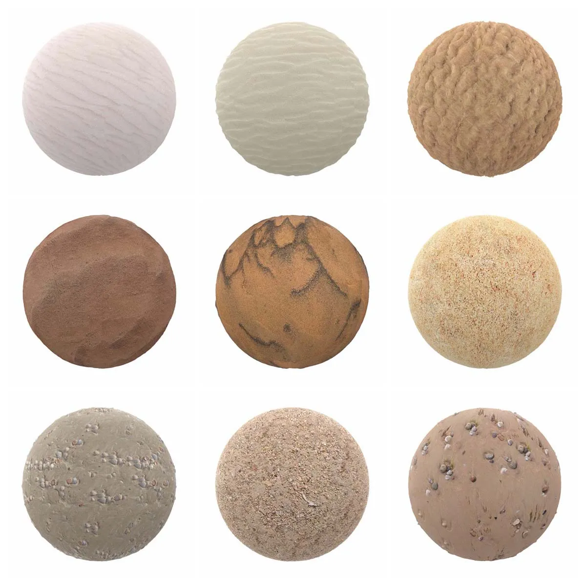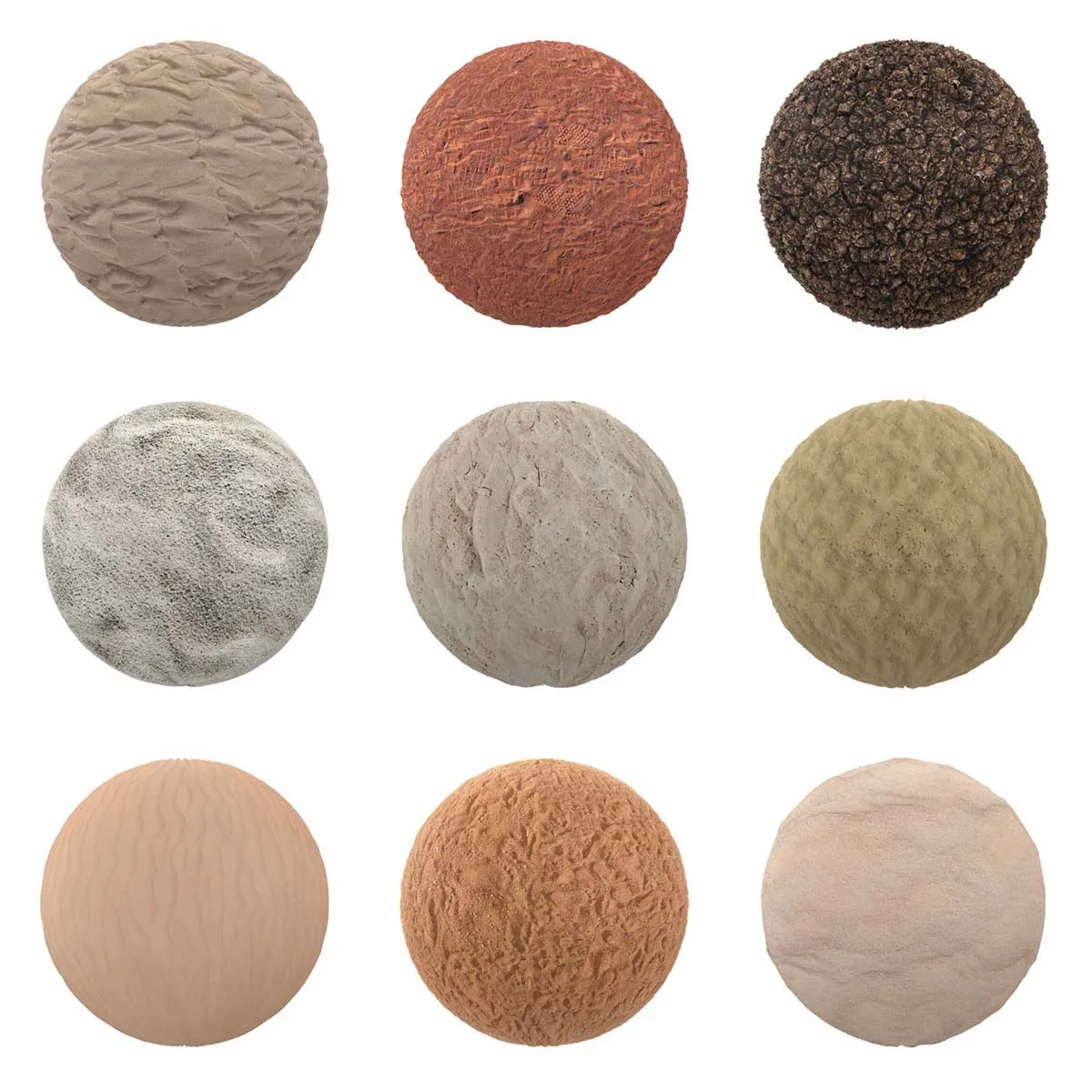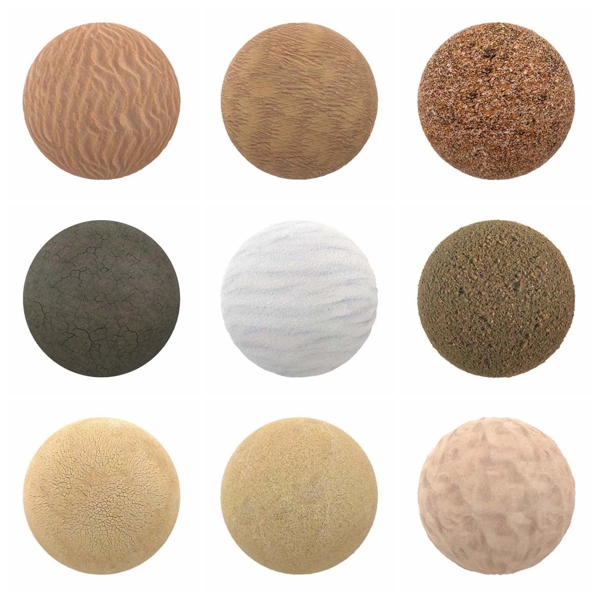 收集第8卷是一组100种不同类型土壤的PBR纹理。在这些PBR纹理中,你会发现泥,干和破裂的污垢,沙子有许多不同的变化。每个纹理的分辨率为4096 x 4096像素。所有图像都是PNG文件格式的完全可平铺(无缝),并有五个地图:漫反射/反照率,光泽度,高度/位移,法线贴图和反射。