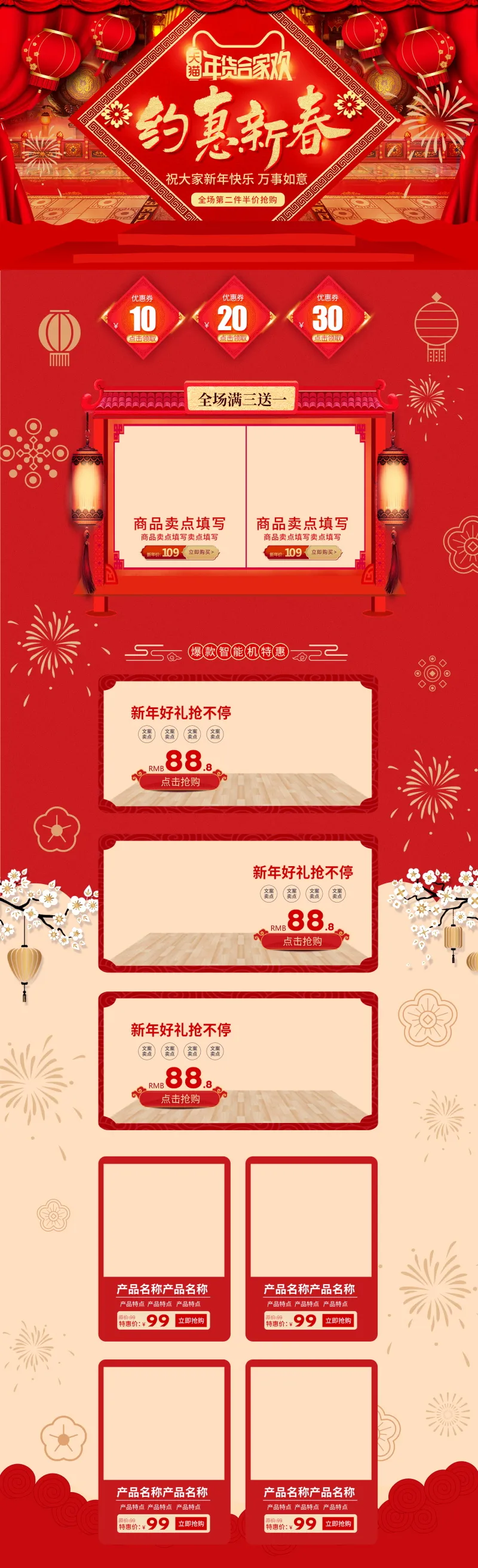 淘宝网络电商天猫店铺鼠年年货节店铺装饰模板电脑端+手机端