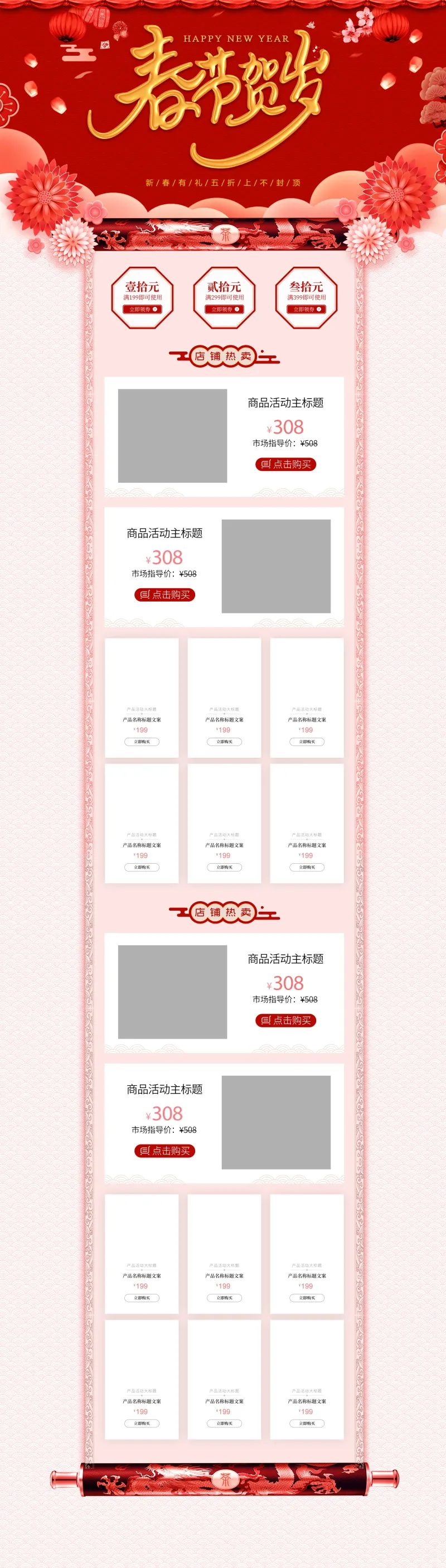 淘宝网络电商天猫店铺鼠年年货节店铺装饰模板电脑端+手机端