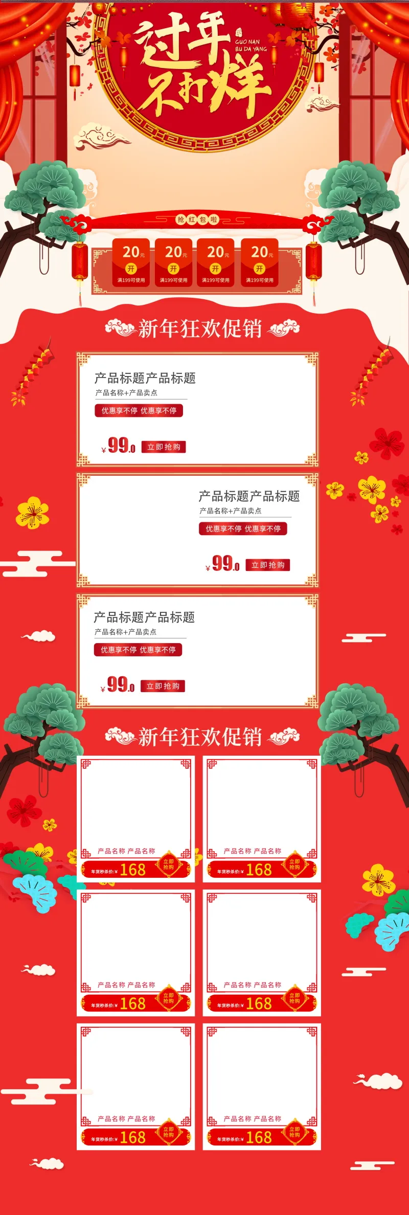 淘宝网络电商天猫店铺鼠年年货节店铺装饰模板电脑端+手机端