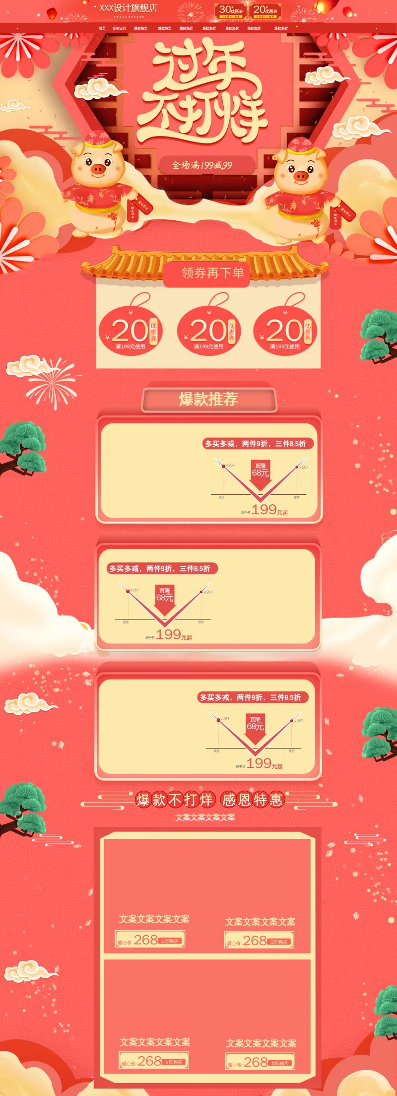 淘宝网络电商天猫店铺鼠年年货节店铺装饰模板电脑端+手机端