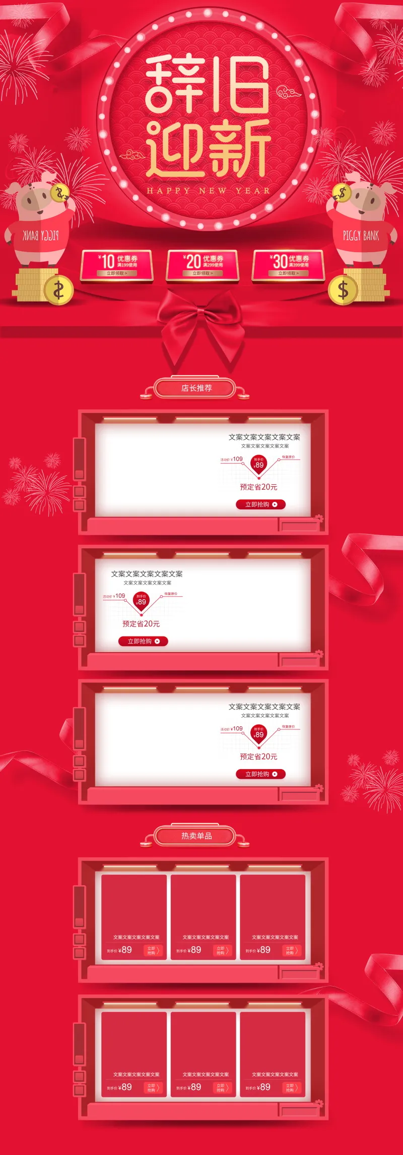 淘宝网络电商天猫店铺鼠年年货节店铺装饰模板电脑端+手机端