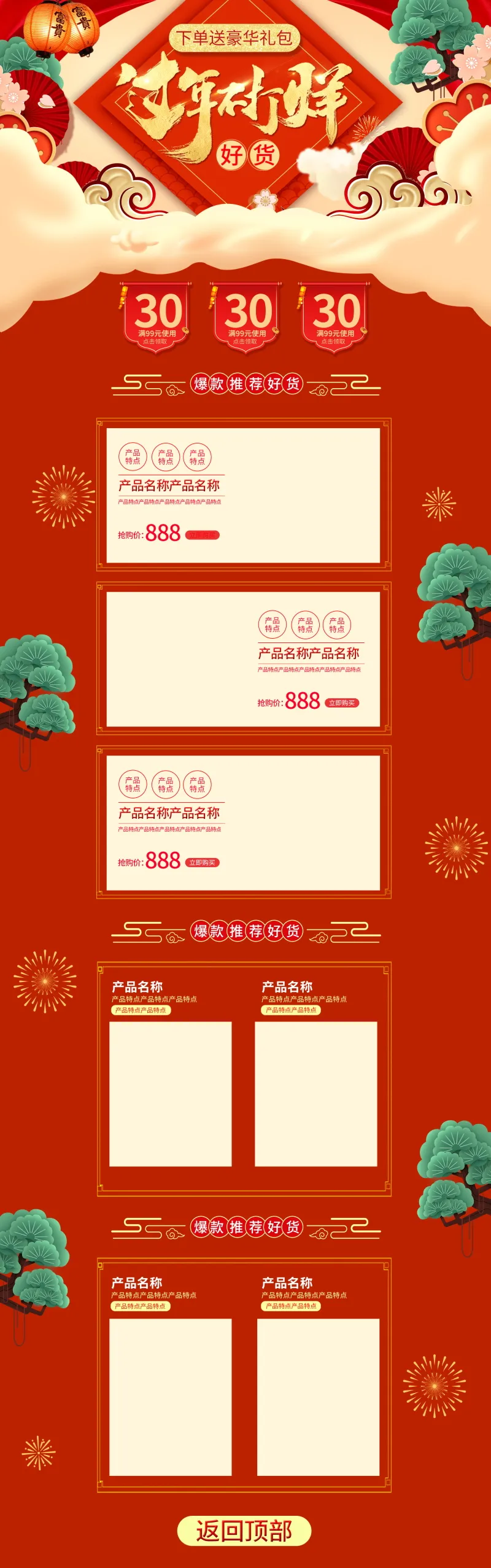 淘宝网络电商天猫店铺鼠年年货节店铺装饰模板电脑端+手机端 预览图