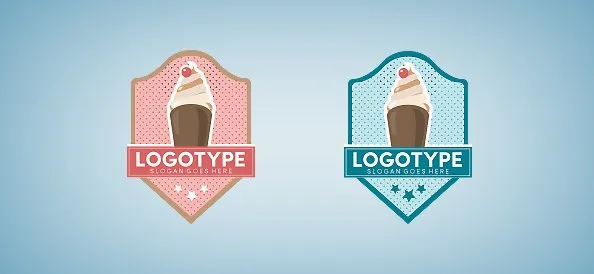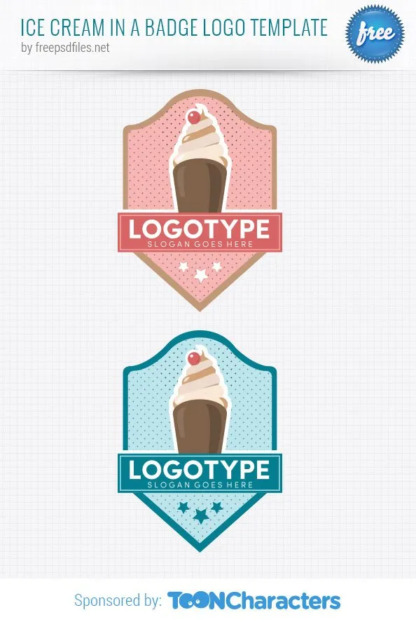 带有两个背景版本的徽章冰淇淋 - 粉红色和蓝色。 我们已经制定了他们,所以您可以选择最适合您的项目或公司的选项。