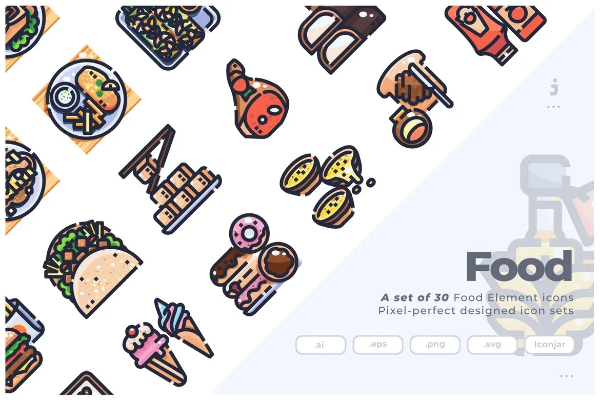 此包装中包含60个图标(30个大纲/ 30个彩色版本)