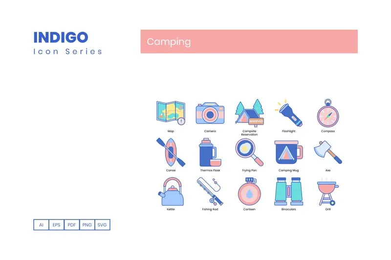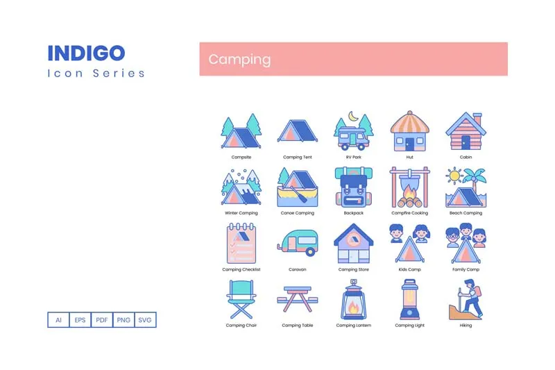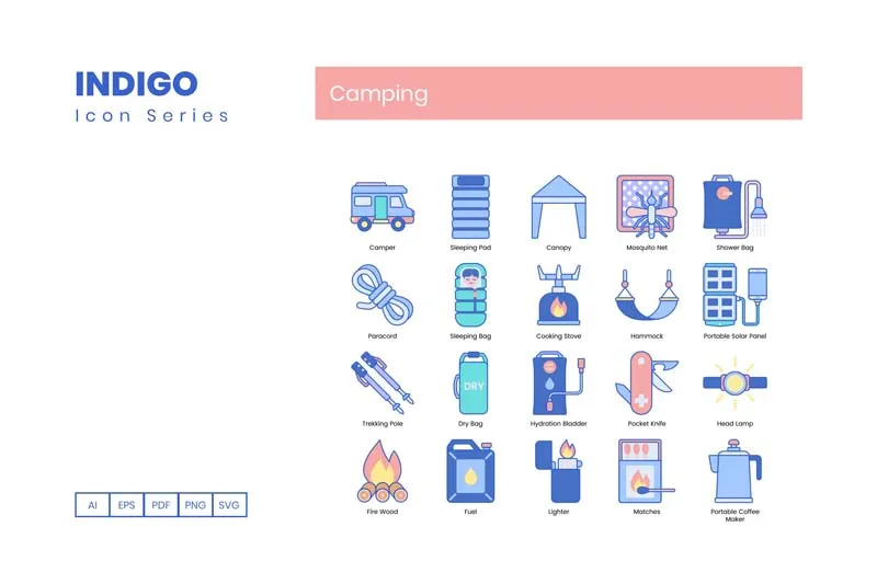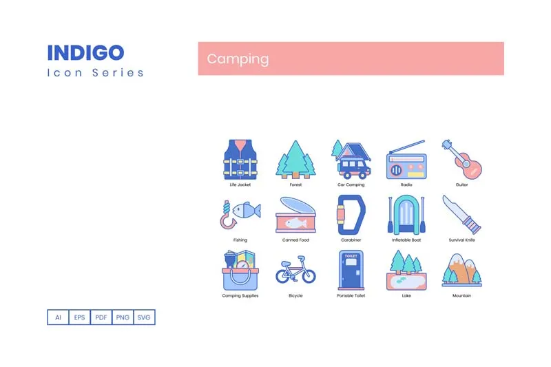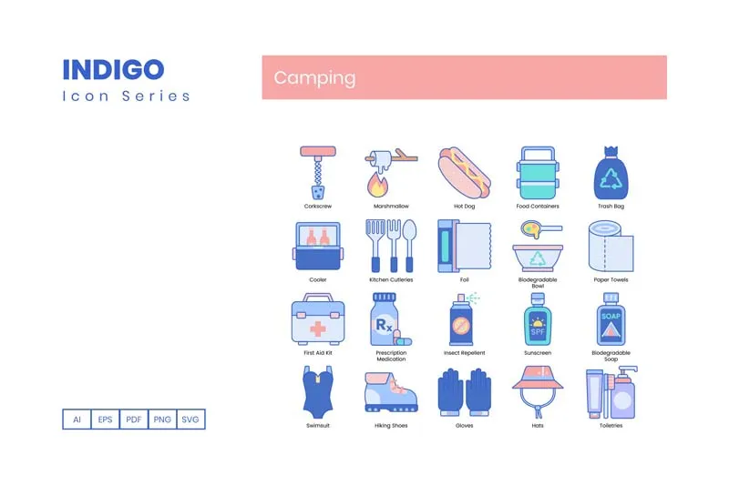 这就是为什么露营是如此有趣的活动!你可以远离一切,为自己充电!如果您是露营爱好者,或者您有业务或正在寻找露营领域,我们为您提供完美的图标!这些90个露营图标将为您提供所需的创意!将它用作营销工具或演示文稿中的图标,它完美运行!如果您想将它用作网站或应用程序中的图标,它也可以运行得很好!自由是你的!