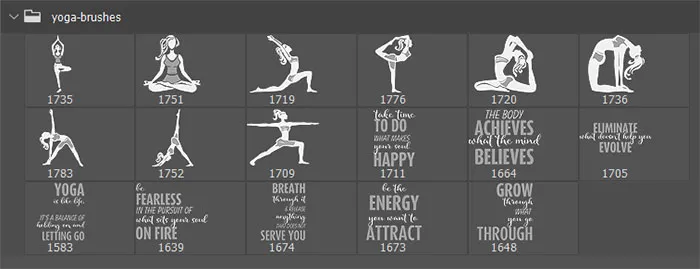 该套装共包含17种高分辨率的刷子,不仅包含流行的瑜伽姿势,还包含可以构成整体健康练习的健身。前九个画笔是瑜伽姿势。这些画笔旨在用作Photoshop中的印章画笔。每个画笔的分辨率约为2000像素,即使对于300 DPI设计或您希望稍后打印的设计,它们也足够大。您可以下载的文件是包含在ZIP文件中的ABR Photoshop笔刷文件。