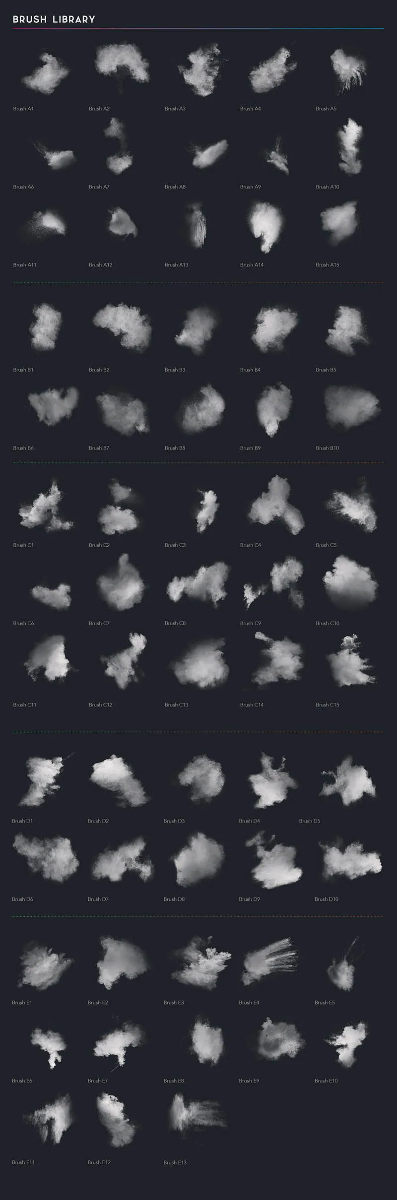 适用于Procreate的60多种单独拍摄和切割的粉末刷