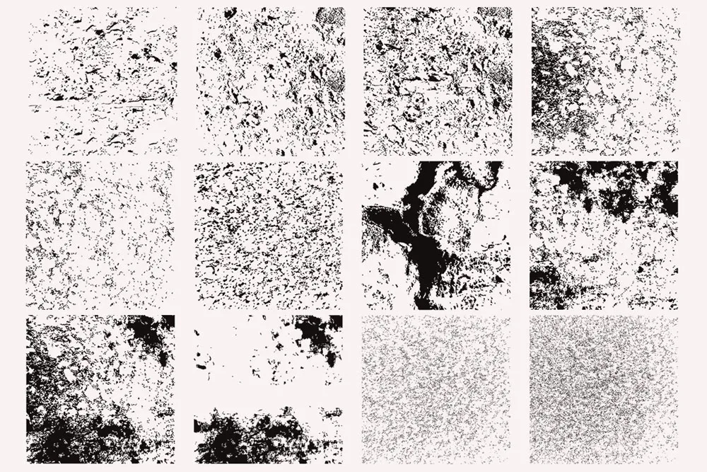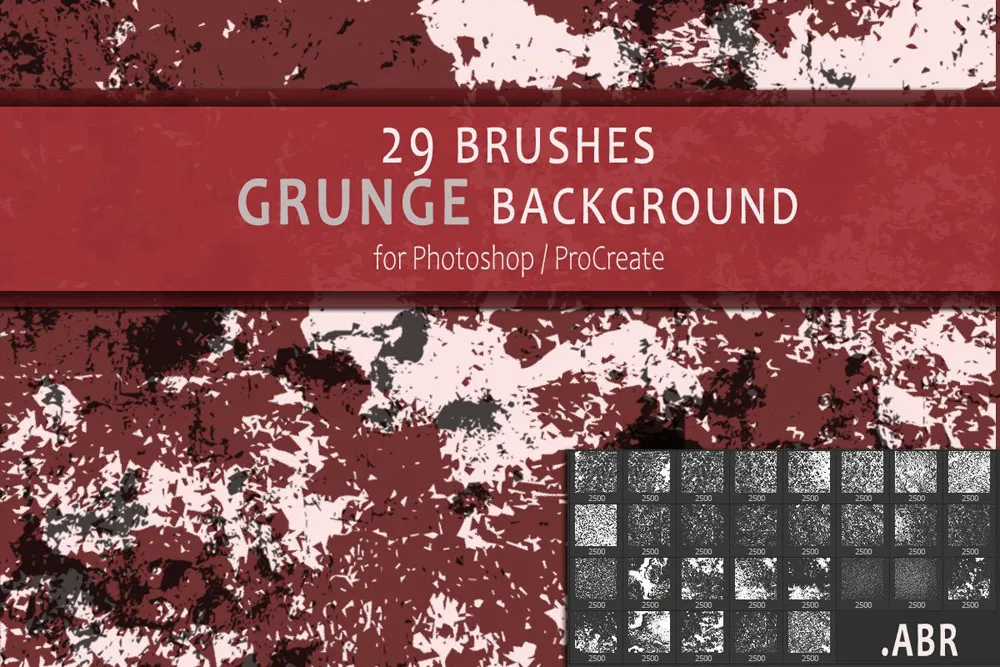 ZIP 文件夹包含 29 个用于 Photoshop 的纹理垃圾画笔,格式为 .ABR。