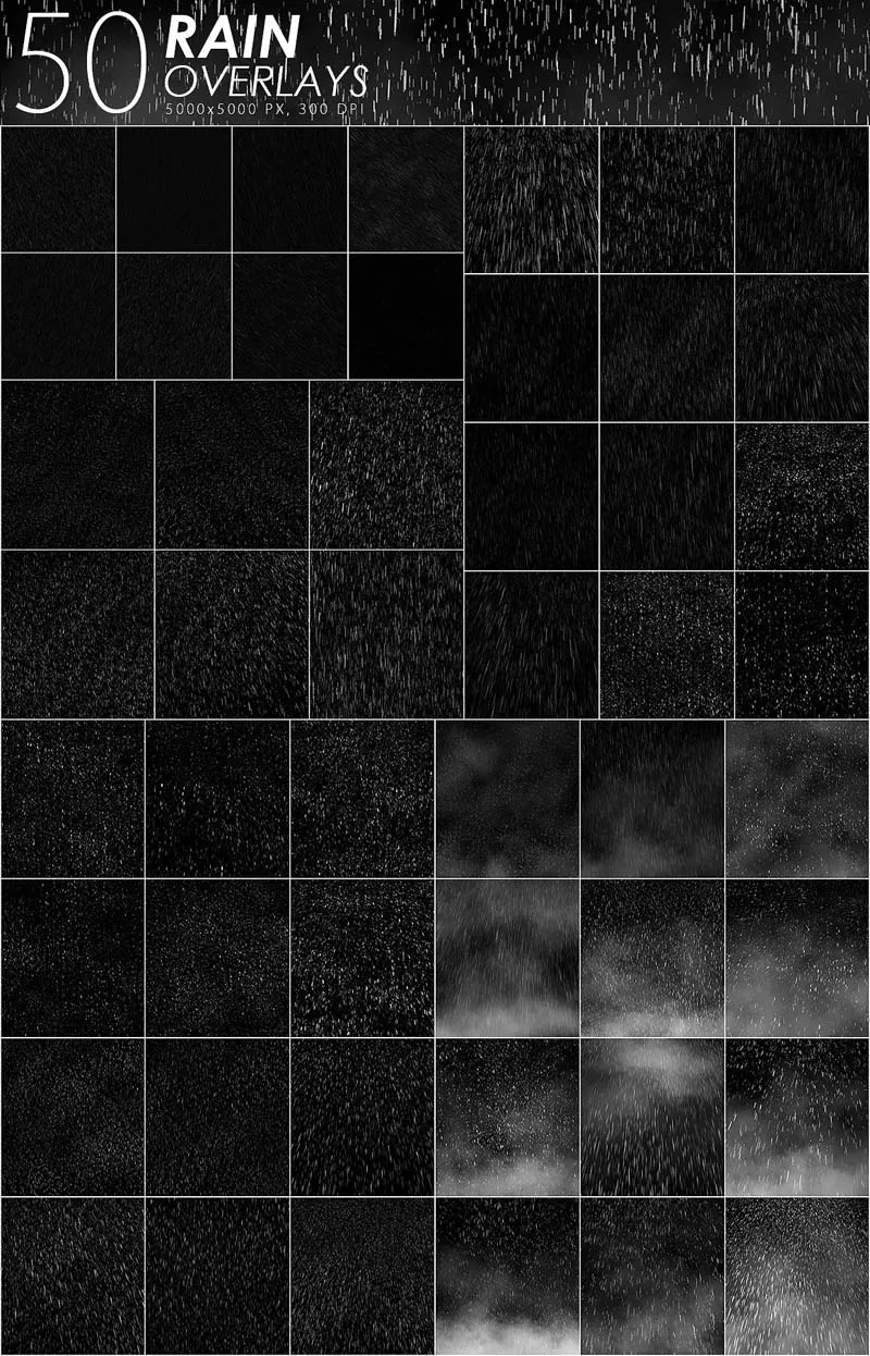 50个雨覆盖层(5000x5000像素,300 dpi,Jpeg)