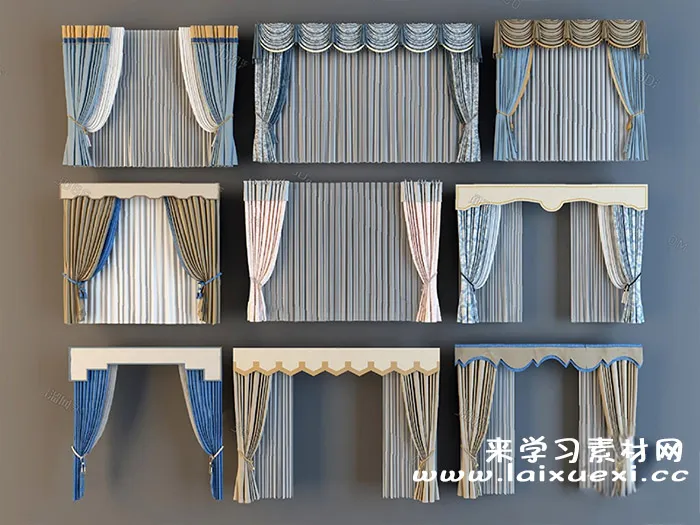 素材说明:来学习素材网为您提供高品质实用的9款现代欧式窗帘3D模型,本次主题是9款现代欧式窗帘3D模型,素材图片编号是02J10101019,素材尺寸是None,该素材大小是20.3 MB。9款现代欧式窗帘3D模型是由热心网友dream上传。你可能还对窗帘3D 欧式窗帘3D 3DMAX VIP 3DMAXVIP 3D模型 MAX 相关设计素材感兴趣。