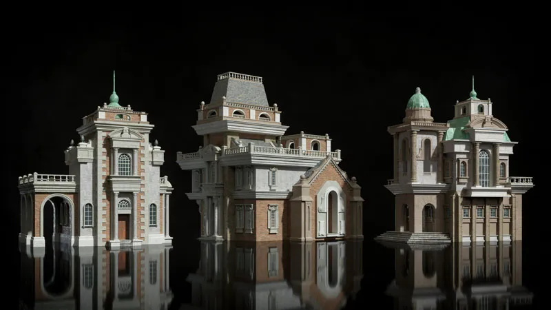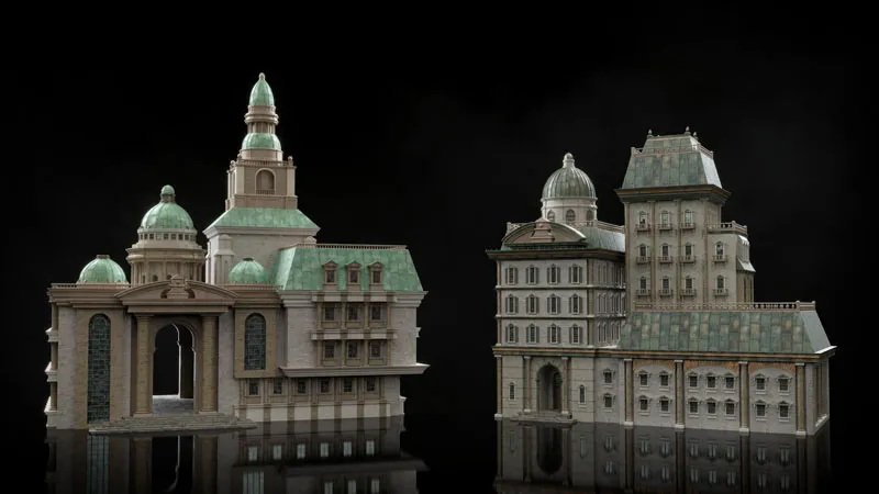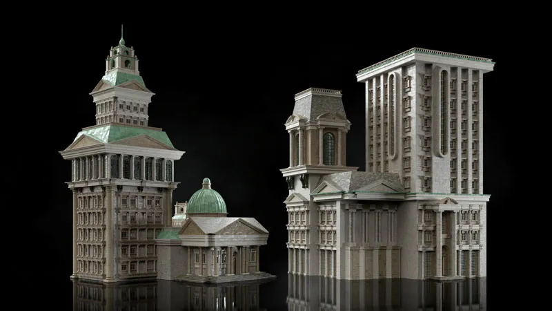 建造历史悠久的市政广场或建造最终的新古典幻想城市。这些宏伟的建筑借鉴了Palladian和Regency建筑的传统,使用了漂亮的山墙,拱门,柱子,威尼斯窗户,镀铜以及高大而复杂的塔楼。有多种石材,砖块,灰泥和木材纹理可供选择,您可以为您的世界增添罗马,联邦甚至超凡脱俗的天赋。