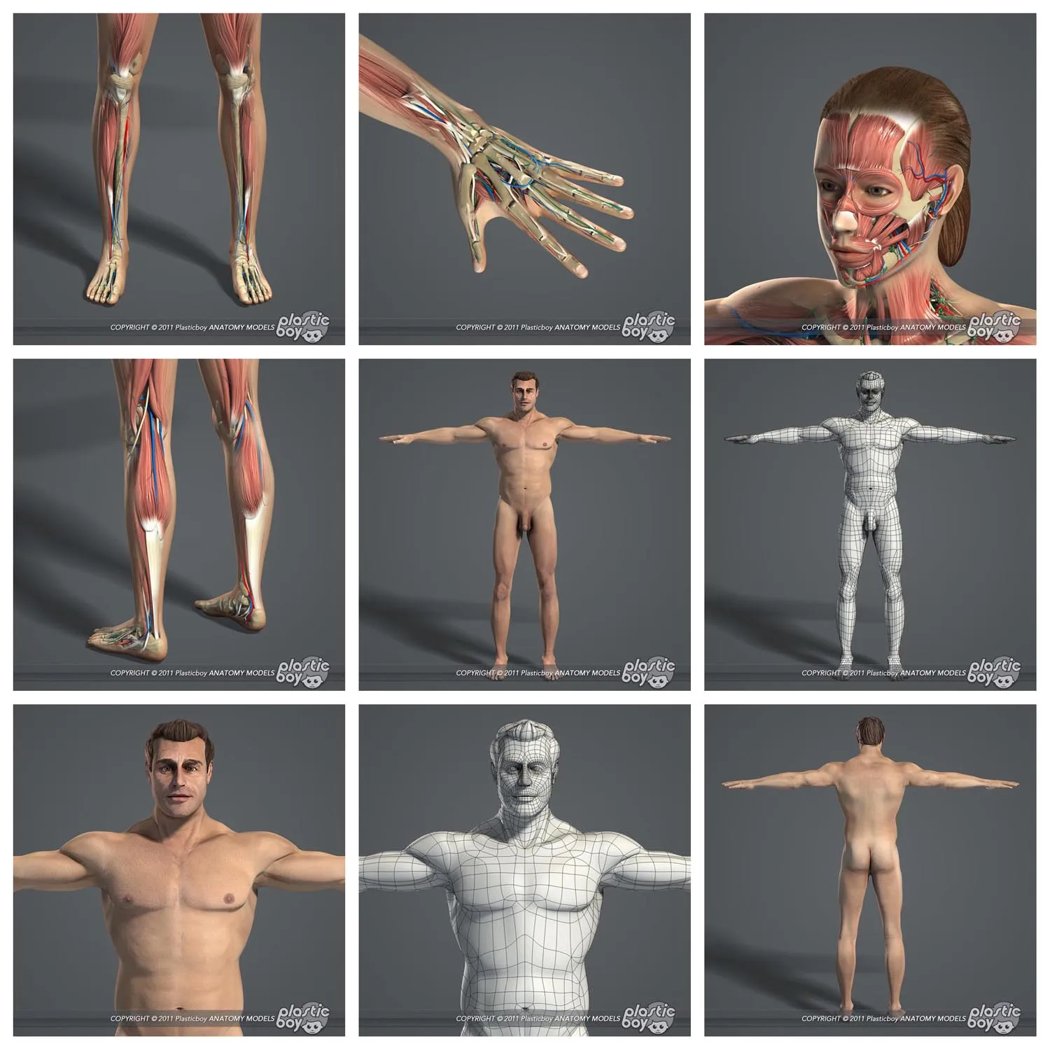 这是男性和女性解剖结构的3D模型(包括所有解剖系统)。