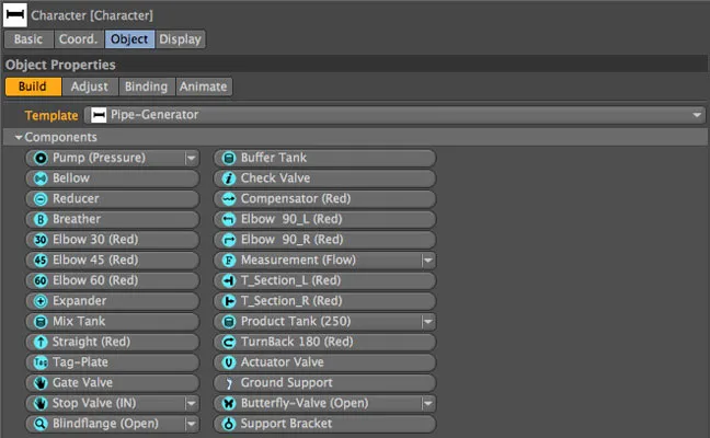 Create custom piping features, industrial elements and elements for steam punk designs in a few clicks! This rig, created by my friend Peter Holweg (xplicitcreations.com), is incredibly easy and fun to use. Simply pick from dozens of component options, click one, and it will instantly create custom pipes.