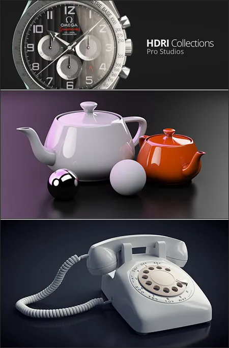 HDRI Collections: Pro Studios is an add-on collection of over 70 studio images made to light your scenes, animations and products just like a real studio. This special collection is made by real lighting artists that work professionally in commercial television and film. These guys really know how to make stuff look beautiful.