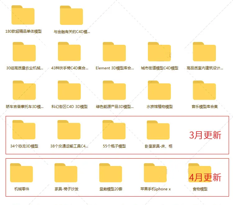 <C4D模型单体三维模型包 GSG单体3D精细工程设计素材源文件C4D预设> ├来学习资源网_设计素材打包_自学视频教程下载.url ├<180款超精品单体模型> │ ├这里是预览文件.pdf │ └<lib4d> ├<2月更新> │ ├<30组高质量农业机械建筑可视化三维模型> │ ├<43种扶手椅C4D集合模型> │ ├<Element 3D模型库合集> │ ├<城市街道模型C4D模型> │ ├<高品质室内建筑设计模型合辑> │ ├<轿车吉普摩托车3D模型> │ ├<科幻街区C4D 3D模型> │ ├<绿色能源产品3D模型合辑> │ ├<音乐模型库合集> │ └<与金融有关的C4D模型包> ├<3月更新> │ ├<34个恐龙3D模型> │ ├<38个交通运输工具C4D模型合集+> │ └<55个瓶子模型> ├<4月更新> │ ├<火车头> │ ├<机械零件> │ ├<家具-椅子沙发> │ ├<盆栽模型20套> │ ├<苹果手机iphone x> │ ├<圣诞模型> │ ├<食物模型> │ ├<卧室家具-床、柜> │ ├<香水化妆品模型>