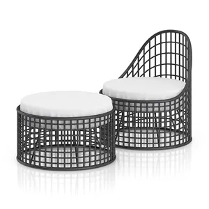 桌子,咖啡和长凳,吊床,秋千和遮阳伞的柳条沙发。