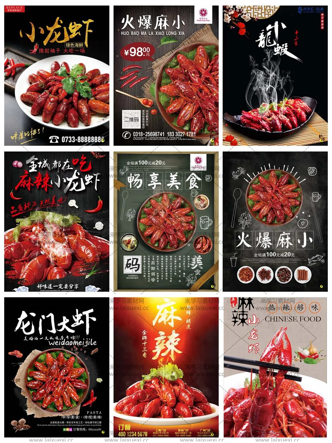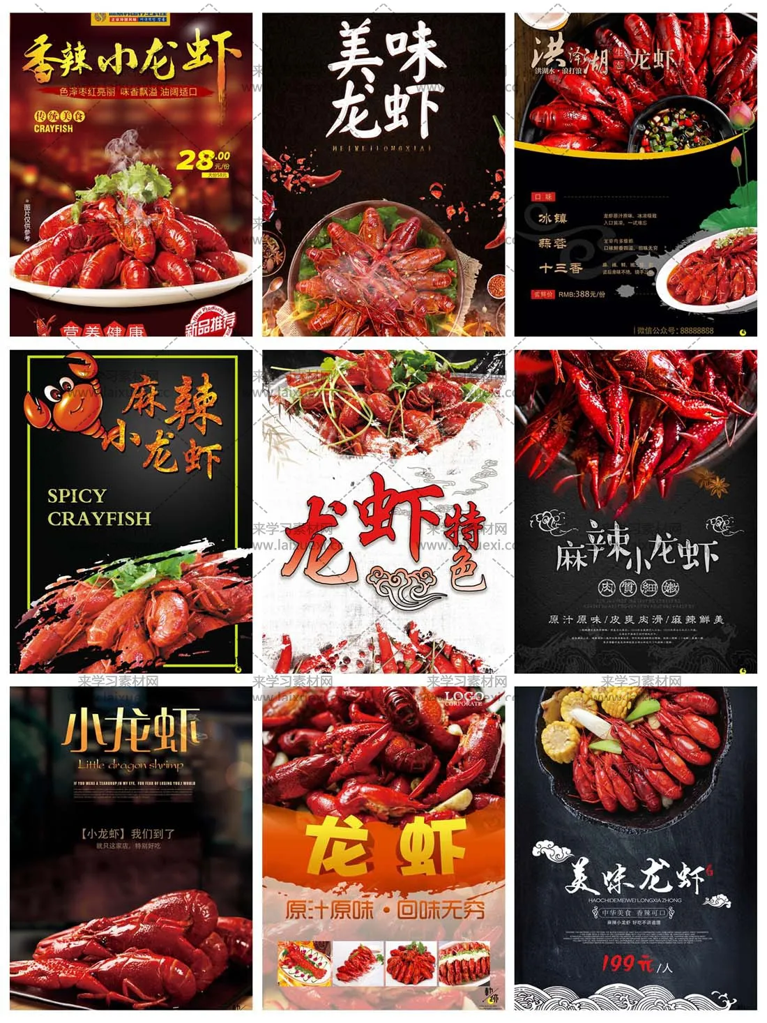 素材说明:来学习素材网为您提供高品质实用的30款火爆麻辣小龙虾PSD海报,本次主题是30款火爆麻辣小龙虾PSD海报,素材图片编号是90E191734,素材尺寸是7085x9449,该素材大小是3.96 GB。30款火爆麻辣小龙虾PSD海报是由热心网友dream上传。你可能还对美食 食物 龙虾 小龙虾 小龙虾海报 PSD VIP PSDVIP 小龙虾传单 相关设计素材感兴趣。