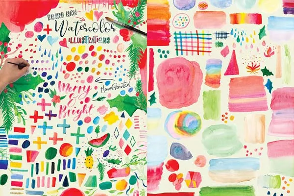 - 大约2,000个华丽的图形 - 水彩纹理,剪贴画,手绘插图,数码纸,无缝模式等。